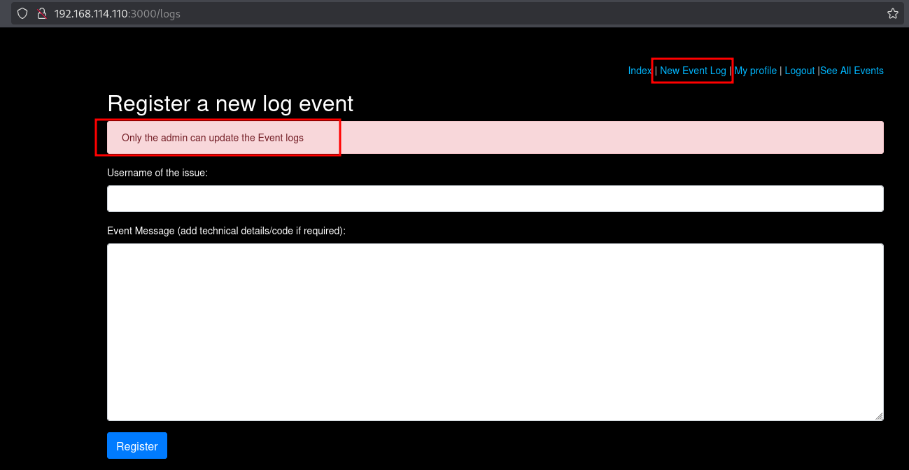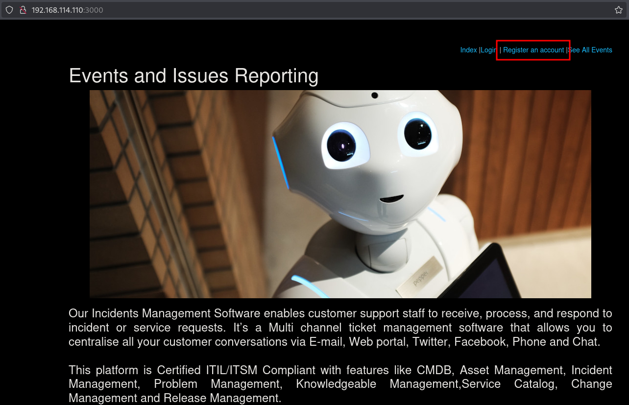 to get administrative access. With this access we can register an event and using node.js to get initial access.
