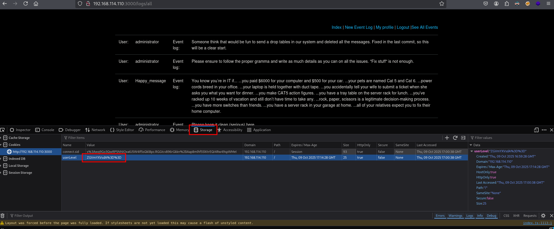 . After registering and logging in we find that the cookie can be changed to URL and base64 encoded admin